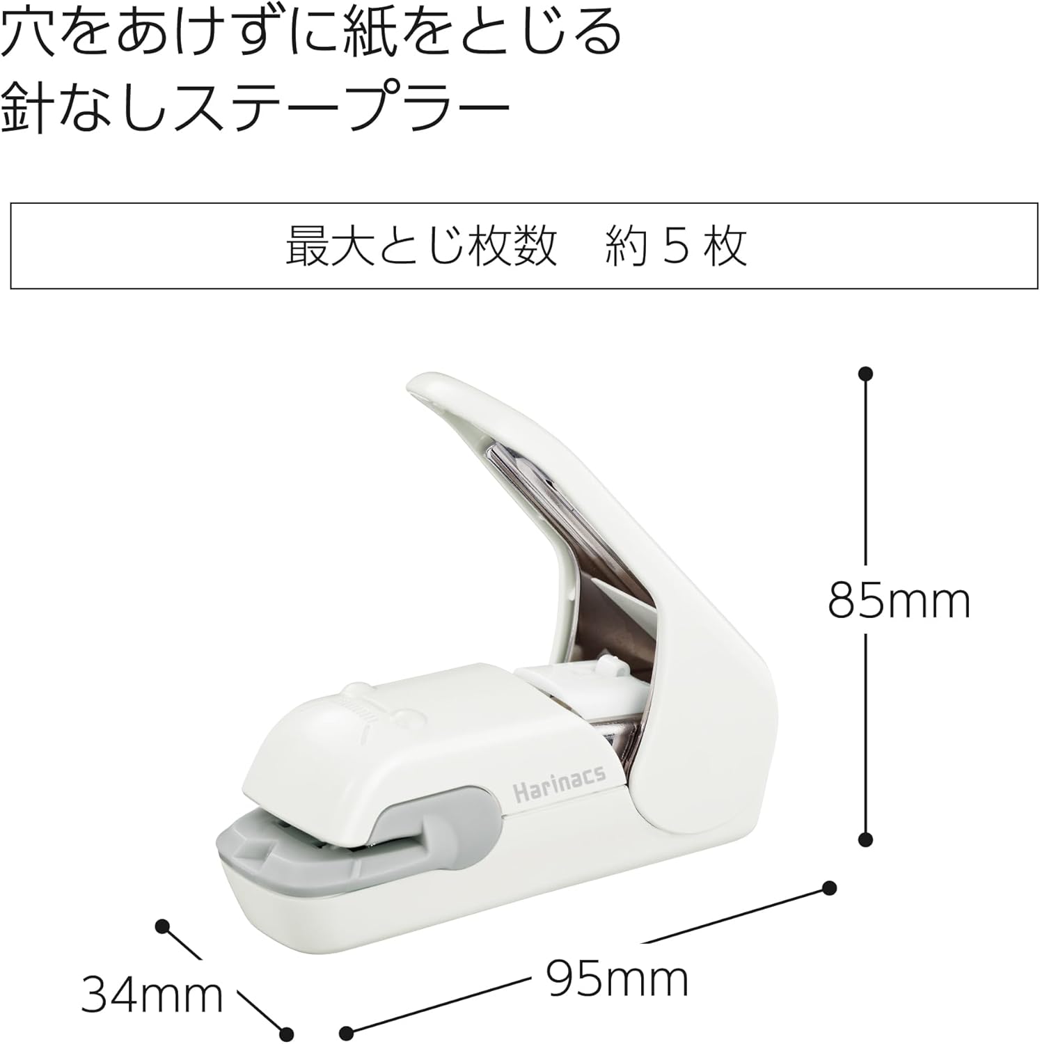 Kokuyo Harinacs Press Stapleless Stapler | Pale White