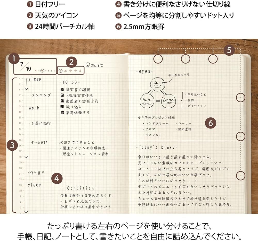 Built around a two-pages-per-day layout, this diary gives you room to plan, reflect, and document your day in detail. Unlike dated planners, the undated format allows you to start anytime and write at your own pace—whether daily or intermittently.