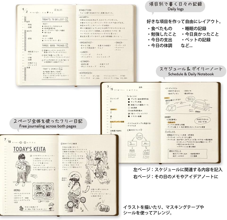 The Hibino Free Diary (A6) – Ivory by Midori is a uniquely designed planner that offers generous writing space in a compact format.