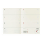 Since it is passport size, you can carry it around with you, so it is also recommended to use it as a one-line diary that you can write whenever you think of something. One book contains 6 months of weekly pages. Two books are included in the set, the first half and the second half. In addition, it uses original writing paper (MD paper) that pursues writing ease, so it is less likely to bleed or show through even with a fountain pen.