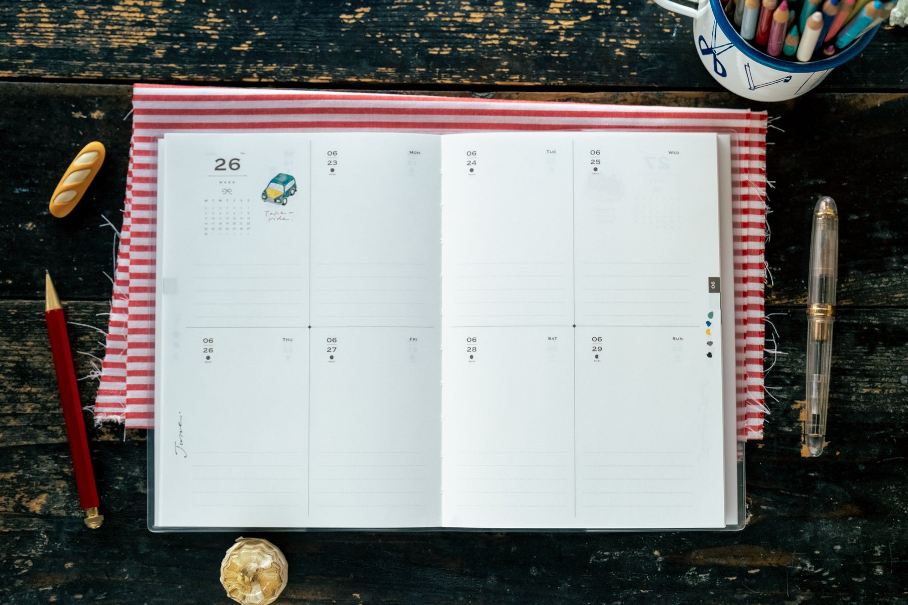 The planner includes a set of 7 postcards/mini cards that can be used to change the front cover image based on your mood and season.